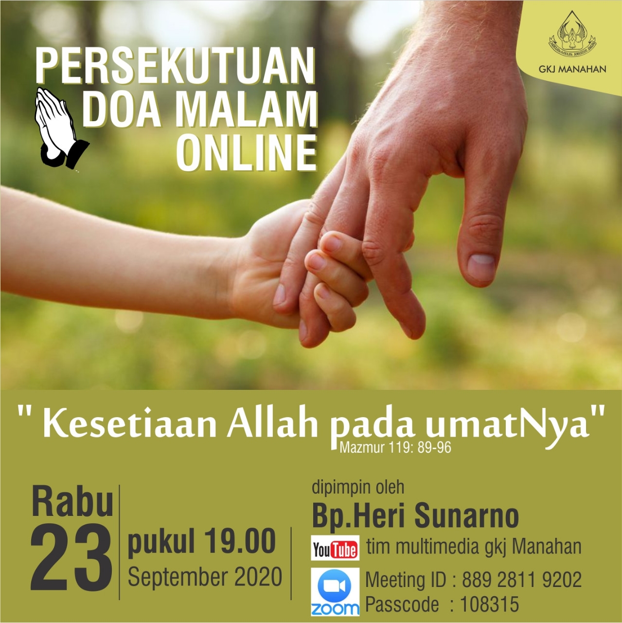 Persekutuan Doa Malam Online oleh Pnt. Heri Sunarno dengan tema "Kesetiaan Allah pada UmatNya" Download: Persekutuan Doa Malam Online Kategori: Berita Add comment Your name * Email * The content of this field is kept private and will not be shown publicly. Homepage Title Comment * Cancel