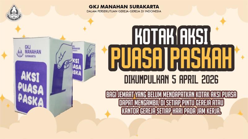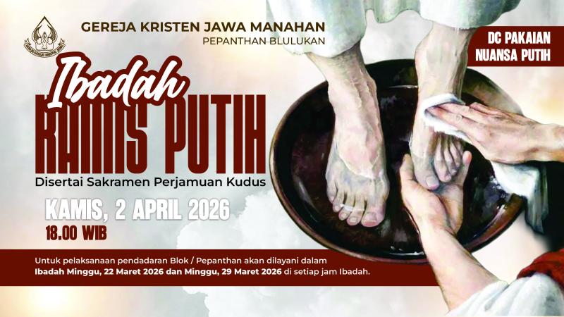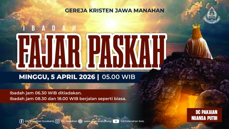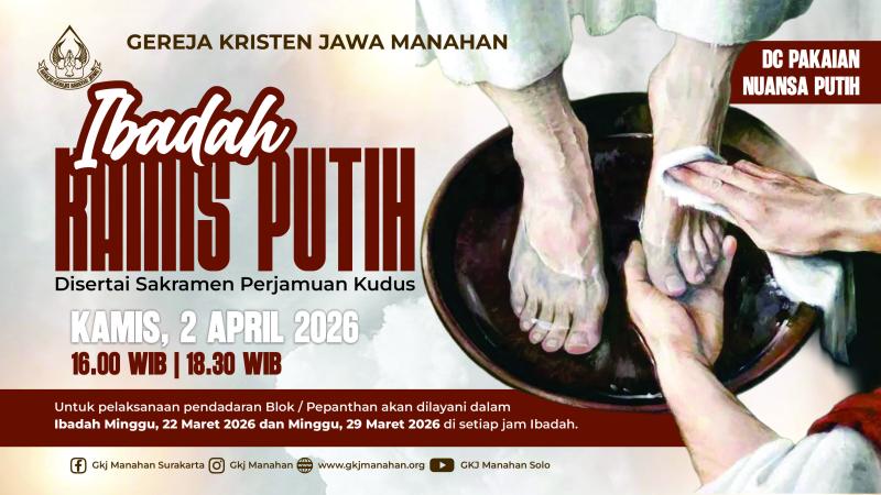 Ibadah Minggu Palma GKJ Manahan pada Minggu, 29 Maret 2026 pukul 06.30 WIB, 08.30 WIB dilaksanakan secara Online (Live Streaming) dan Onsite (Tatap Muka), sedangkan Ibadah Pukul 18.00 WIB dilaksanakan secara Onsite (Tatap Muka).