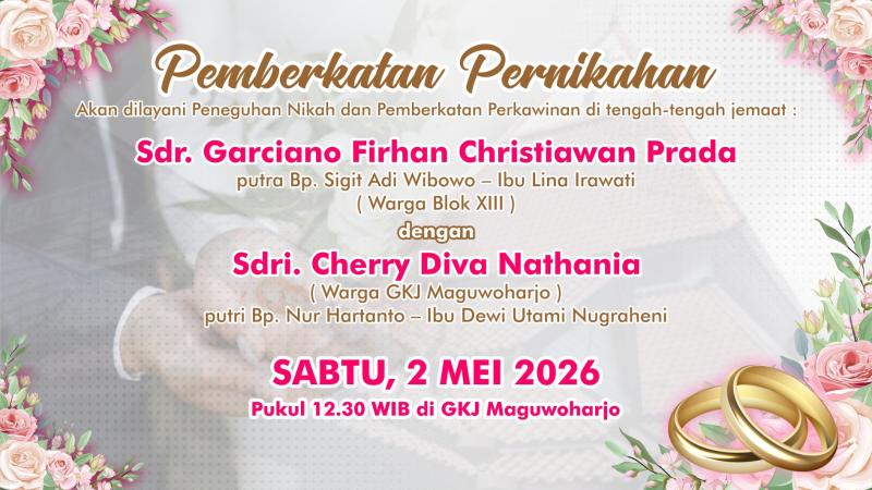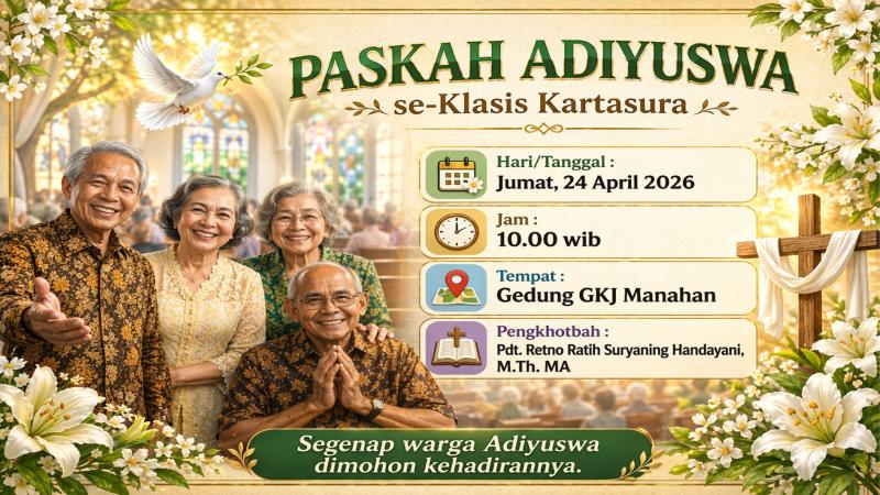 Ibadah Minggu Paskah III GKJ Manahan pada Minggu, 19 April 2026 pukul 06.30 WIB, 08.30 WIB dilaksanakan secara Online (Live Streaming) dan Onsite (Tatap Muka), sedangkan Ibadah Pukul 18.00 WIB dilaksanakan secara Onsite (Tatap Muka).
