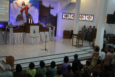 Ibadah minggu, 18 Juli 2010. Jam 06.30 & 08.30 WIB dilayani oleh Pdt. Retno Ratih Suryaning Handayani, M.Th. Firman Tuhan didasarkan pada bacaan Injil Lukas 10: 38-42. Dengan ayat 39 “.. Maria ini duduk dekat kaki Tuhan dan terus mendengarkan perkataan-Nya,” sebagai dasar perenungan. Pdt. Ratih menyatakan bahwa kita semua menghayati dan mengerti bersama bahwa manusia butuh bekerja. Bekerja adalah panggilan, bahkan sejak sebelum manusia jatuh dalam dosa. Sebab, bekerja tidak hanya untuk memenuhi kebutuhan hidup, akan tetapi juga mempermuliakan Allah.